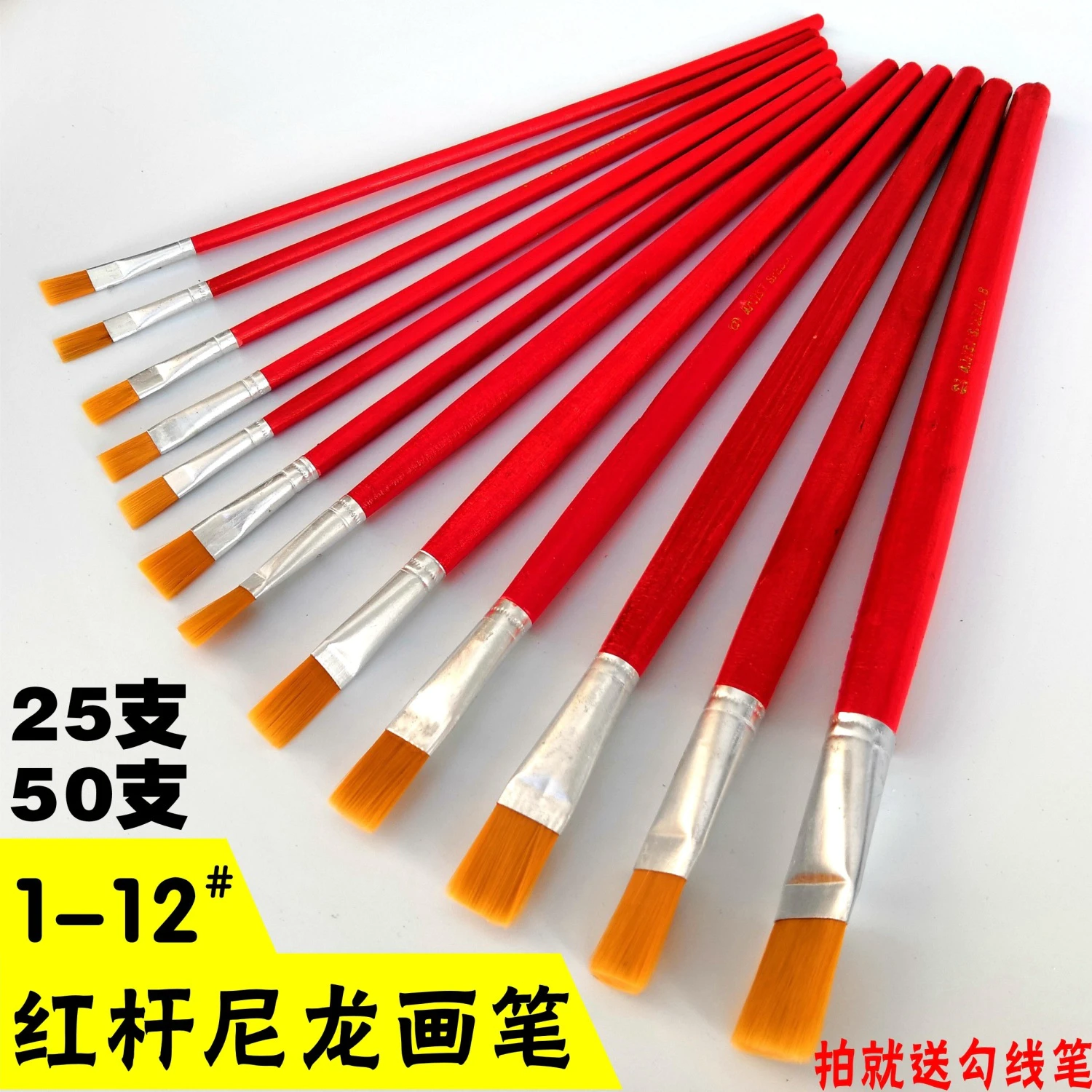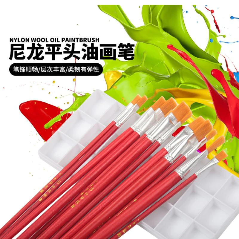 长柄软毛平头油画笔水粉水彩笔油漆笔刷毛刷涂胶油漆刷平头小毛刷 数量